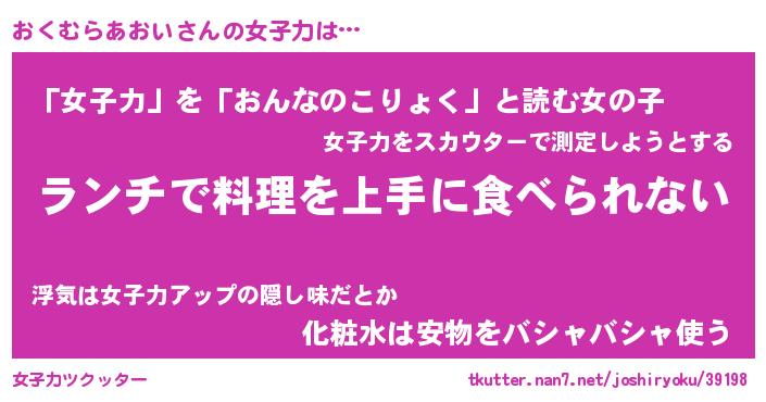 | 胡散臭い通販商品みたいなあだ名 | 『億万長者になれるブレスレット…その名も「おくむらあおい」』 |