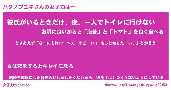 | ヘコむあだ名 | 『ハタにー』『牛乳』『ハタお』 |