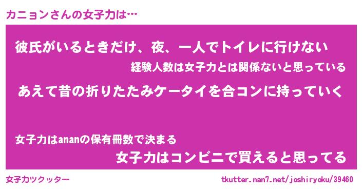 | 男性向けラノベタイトル風あだ名 | 『カニョンの憂鬱』 |