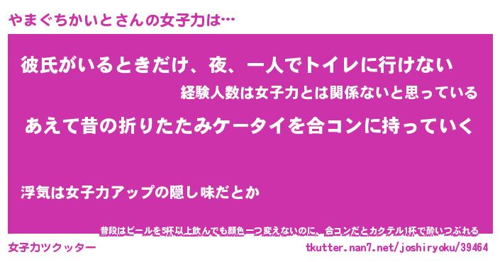 | 恥ずかしいあだ名 | 『プリティーやまぐちかいと』『やまちん』 |