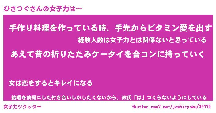 | 女子向けラノベタイトル風あだ名 | 『(仮)ひさつぐのやんごとなき事情』 |