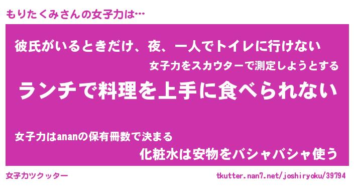 | ヘコむあだ名 | 『もりっふぃ~』『豆乳』『もりっ子』 |