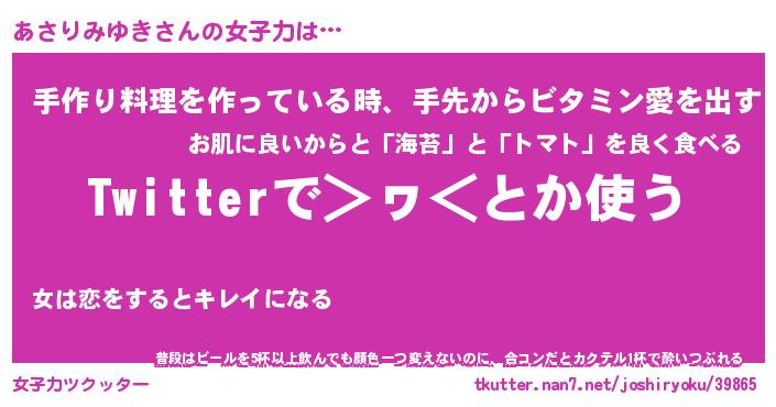 | ヘコむあだ名 | 『あさもー』『つくし』『あさっ子』 |