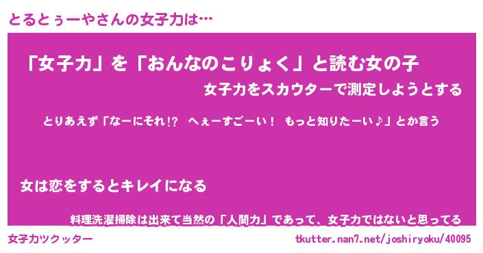 | ヘコむあだ名 | 『とるふぇ~』『レバニラ』『とるを』 |