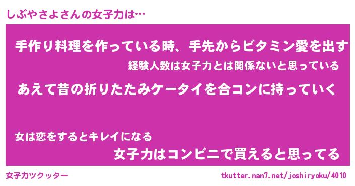 | ヘコむあだ名 | 『しぶにゅー』『つくし』『しぶを』 |