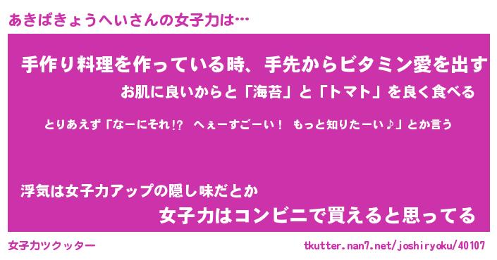 | 恥ずかしいあだ名 | 『プリティーあきばきょうへい』 |