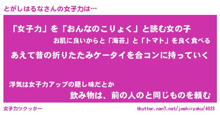 | 肩書あだ名 | 『とがしはるなCEO』『とがしはるな大統領』 |