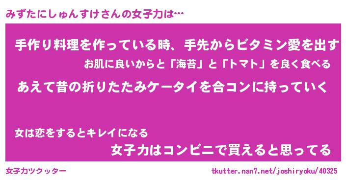 | ヒーロー風カッコイイあだ名 | 『スーパーミズタニシュンスケ』 |