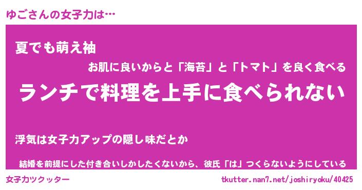 ゆごさんの女子力をツクッター!