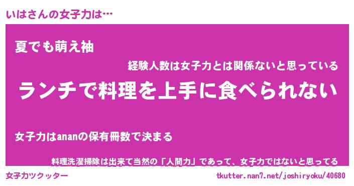 | ヘコむあだ名 | 『いはふぇ~』『なまこ酢』 |