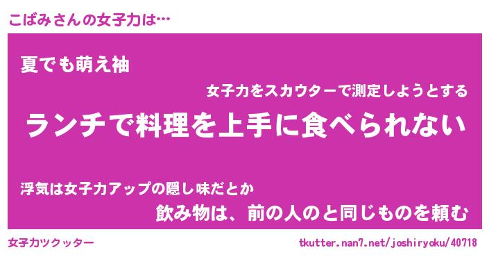 | ヘコむあだ名 | 『こばにゅー』『なまこ酢』『こばを』 |