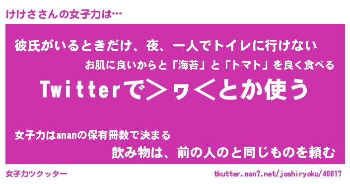 | ファンタジー風あだ名 | 『ケケフェル』『エターナルケケサー』 |
