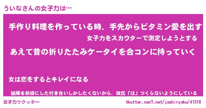 | ヘコむあだ名 | 『ういっふぃ~』『つくし』『ういを』 |