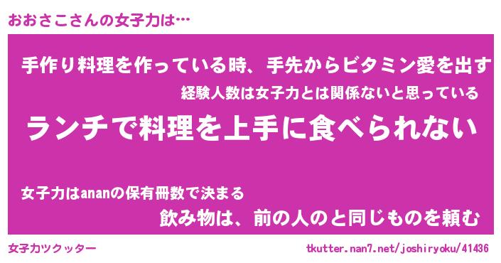 | ファンタジー風あだ名 | 『オオフェル』『エターナルオオサコー』 |