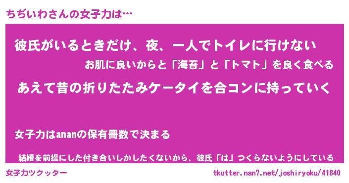 | 意味不明あだ名 | 『ペロリンちぢいわ』『永久保存ちぢいわ』 |