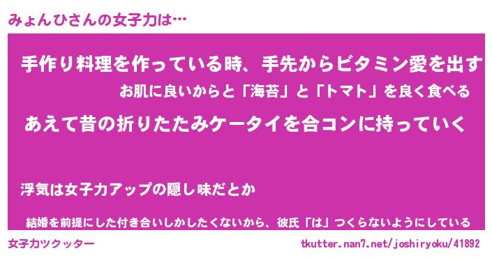 | ヘコむあだ名 | 『みょにー』『レバニラ』『みょを』 |