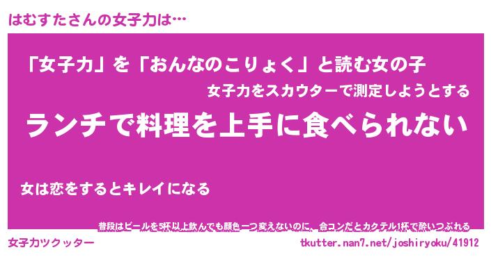 | ポケモン風あだ名 | 『ハムチュウ』『ハムスダネ』 |
