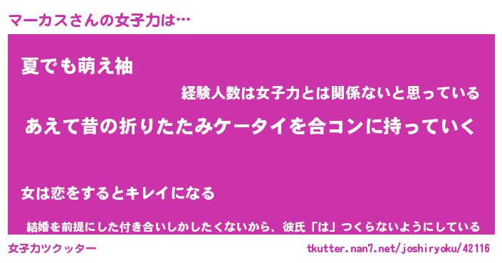 | ヘコむあだ名 | 『マーにゅー』『なまこ酢』 |