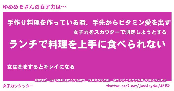 | ファンタジー風あだ名 | 『ユメフェル』『エターナルユメメソー』 |