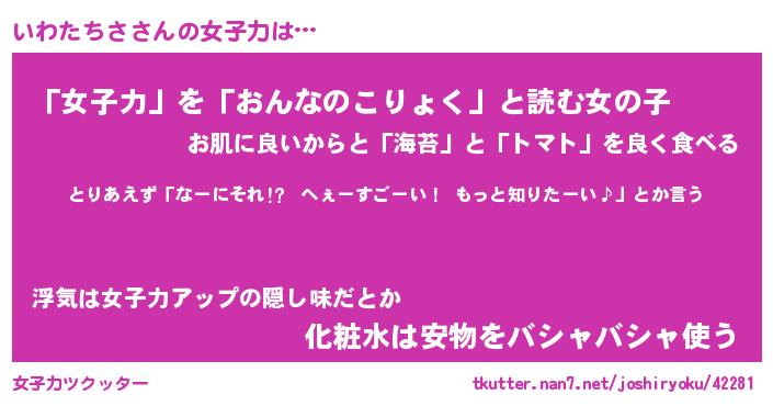 | ヘコむあだ名 | 『いわふぇ~』『レバニラ』『いわお』 |