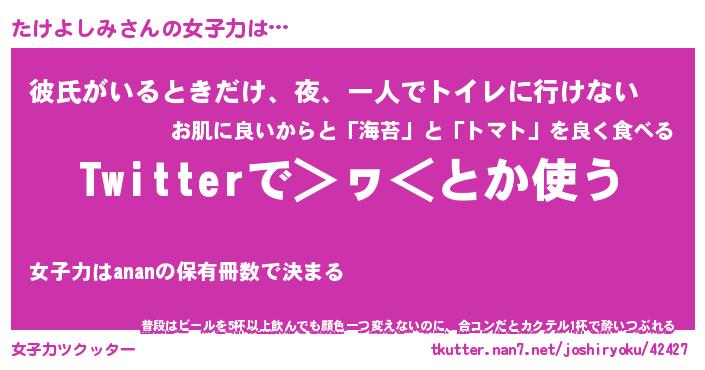 | 恥ずかしいあだ名 | 『プリティーたけよしみ』『たけっちょ』 |