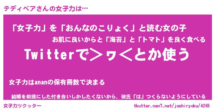 | 男性向けラノベタイトル風あだ名 | 『テディベアの憂鬱』 |