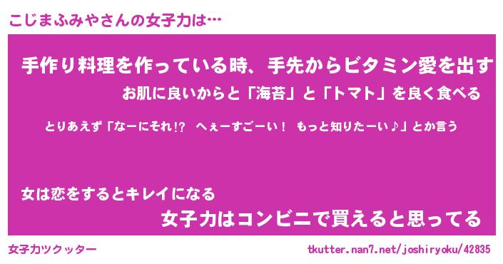 | ヘコむあだ名 | 『こじにゅー』『つくし』『こじお』 |