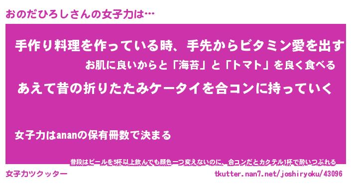 | 恥ずかしいあだ名 | 『プリティーおのだひろし』『おのっちょ』 |