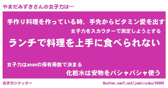 | ヒーロー風カッコイイあだ名 | 『スーパーヤマダミズキ』『魔戒騎士ヤマ』 |