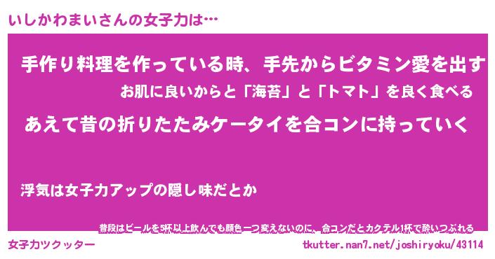 | 胡散臭い通販商品みたいなあだ名 | 『必ず成功するブレスレット…その名も「いしかわまい」』 |