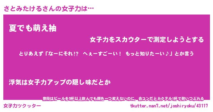 | 肩書あだ名 | 『さとみたける店長』『さとみたける班長』 |