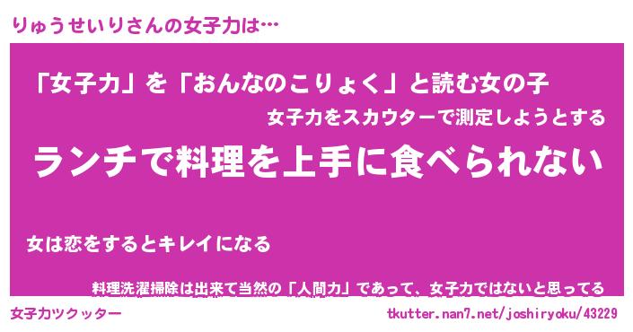 | 恥ずかしいあだ名 | 『プリティーりゅうせいり』『りゅっちょ』 |