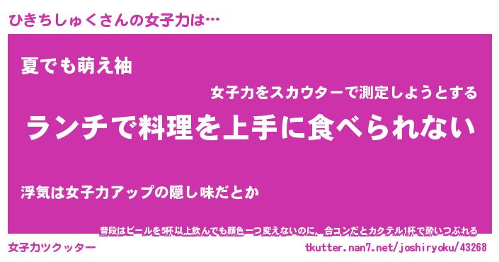 | ヘコむあだ名 | 『ひきっふぃ~』『酢こんぶ』 |