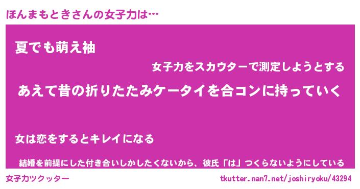 | 女子向けラノベタイトル風あだ名 | 『(仮)ほんまもときのやんごとなき事情』 |