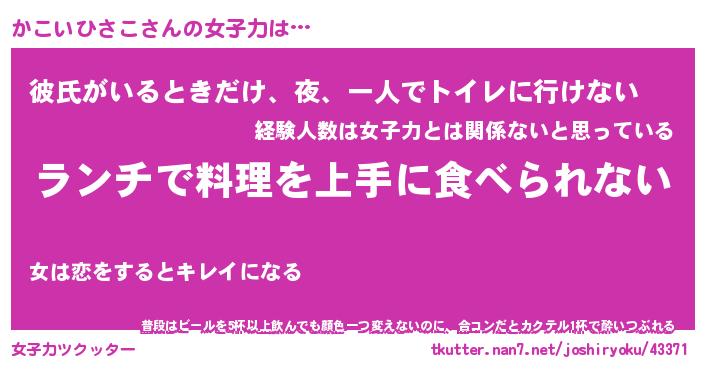 | ヘコむあだ名 | 『かこにゅー』『豆乳』『かこぷりん』 |