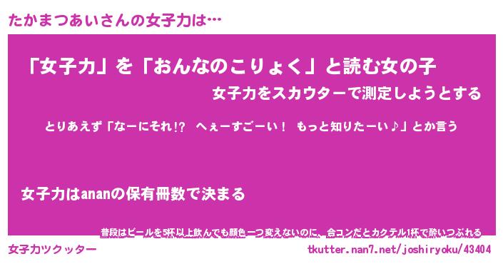 | 女子向けラノベタイトル風あだ名 | 『たかまつあい姫と円卓の騎士』 |
