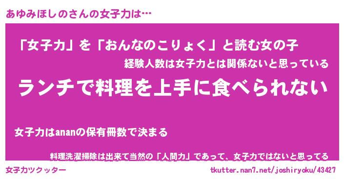 | 恥ずかしいあだ名 | 『プリティーあゆみほしの』『あゆっちょ』 |