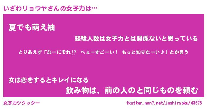 | 恥ずかしいあだ名 | 『プリティーいざわリョウヤ』『いざちん』 |