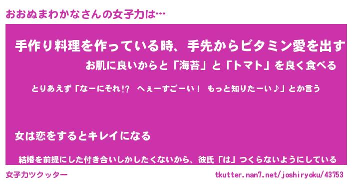 | 恥ずかしいあだ名 | 『プリティーおおぬまわかな』『おおちん』 |