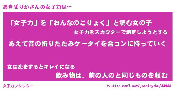 | 恥ずかしいあだ名 | 『プリティーあきばりか』『あきっちょ』 |