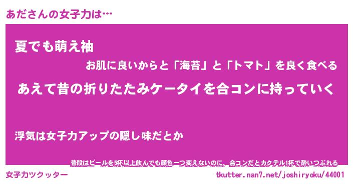 | ヘコむあだ名 | 『あだもー』『酢こんぶ』 |