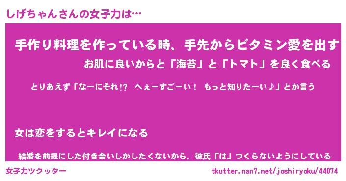 | ヘコむあだ名 | 『しげふぇ~』『つくし』『しげを』 |