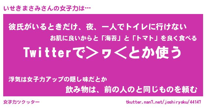 | 恥ずかしいあだ名 | 『プリティーいせきまさみ』『いせっちょ』 |