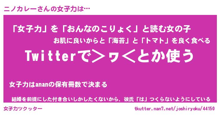 | ファンタジー風あだ名 | 『ニノフェル』『エターナルニノカレーー』 |