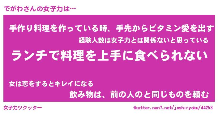 | ヘコむあだ名 | 『でがっふぃ~』『牛乳』『でがっ子』 |