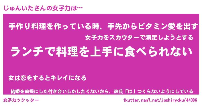 | ヘコむあだ名 | 『じゅもー』『牛乳』『じゅ太郎』 |