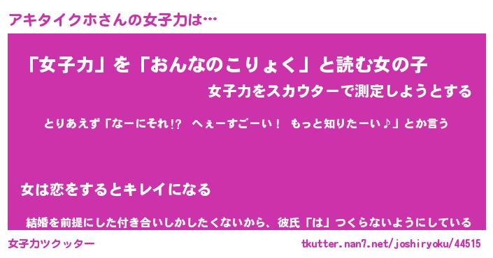 | ヘコむあだ名 | 『アキにー』『牛乳』『アキ太郎』 |