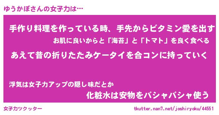 | ヘコむあだ名 | 『ゆうにゅー』『つくし』『ゆうを』 |