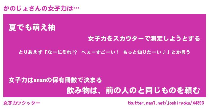 | ヘコむあだ名 | 『かのもー』『なまこ酢』 |