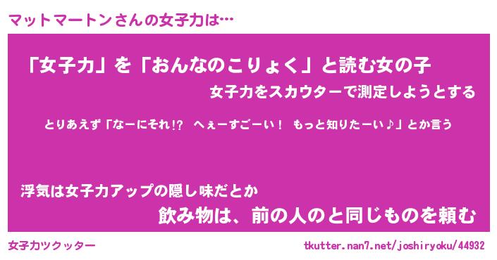 | 恥ずかしいあだ名 | 『プリティーマットマートン』『マッちん』 |